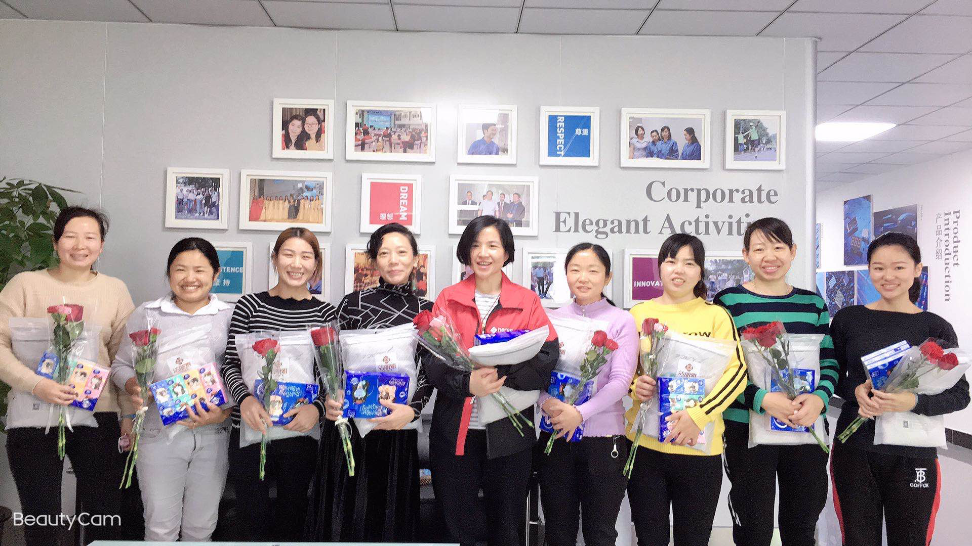 在“三八”國(guó)際勞動(dòng)?jì)D女節(jié)到來(lái)之際,公司為表達(dá)對(duì)女性同仁的特別關(guān)愛(ài),由行政部為每位女神發(fā)放了玫瑰、浴巾和紙巾等愛(ài)心禮品并送上了節(jié)日的祝福。女神們?cè)诮邮斩Y品的那一刻,心花怒放,滿臉笑容。